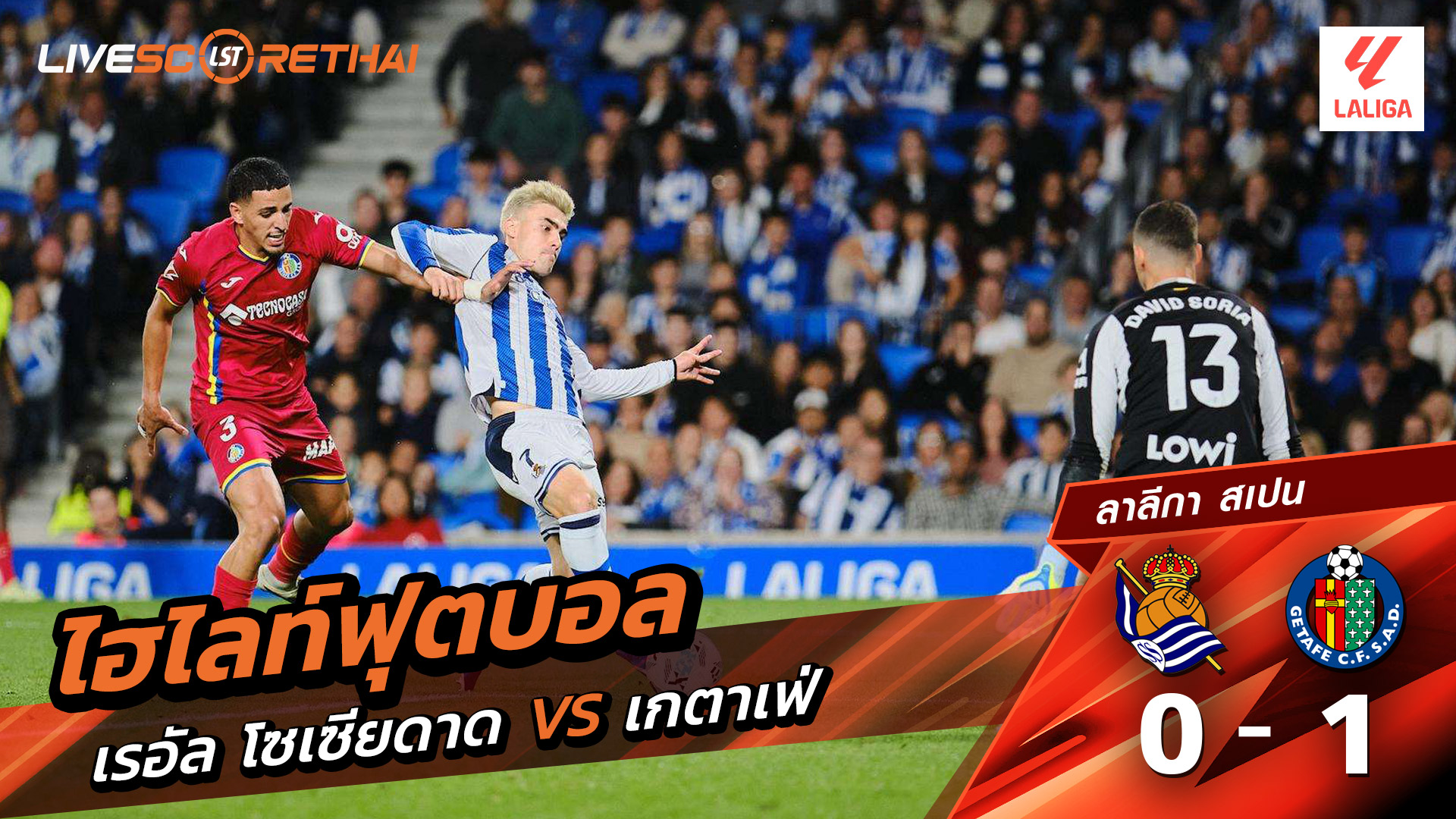 ดูฟรี ไฮไลท์ฟุตบอล ลาลีกา สเปน เรอัล โซเซียดาด VS เกตาเฟ่ ที่ LiveScoreThai