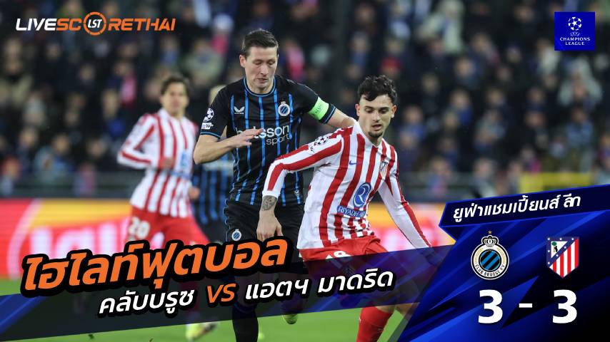 ดูฟรี ไฮไลท์ฟุตบอล ยูฟ่าแชมเปียนส์ลีก คลับ บรูกก์ VS แอตเลติโก มาดริด ที่ www.livescorethai.com